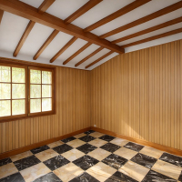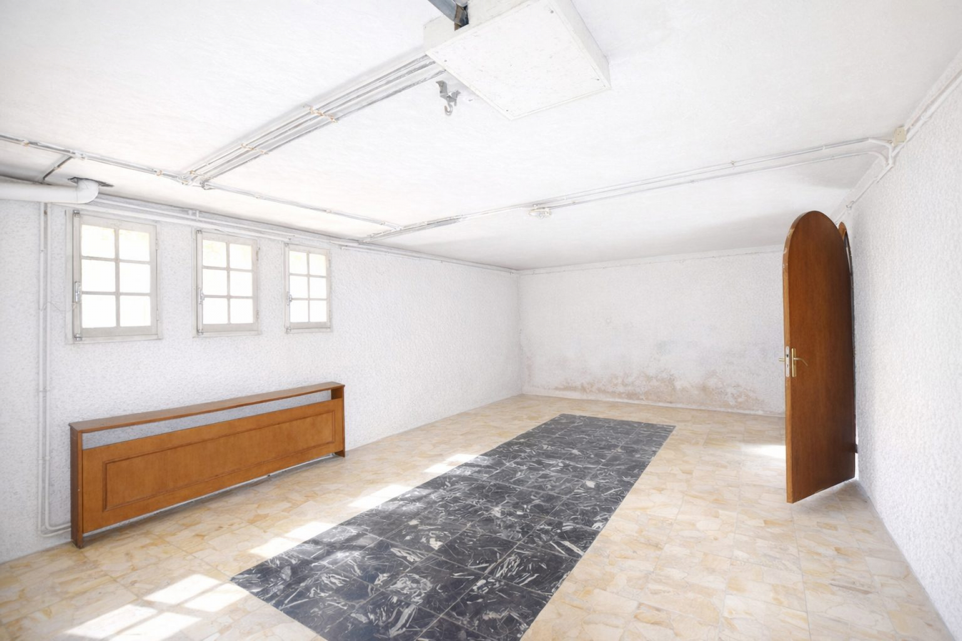 Le rez-de-jardin comprend un grand garage traversant, une première chambre de 9 m² avec salle d’eau et WC, un cellier, un salon-séjour de 58 m², une chaufferie, ainsi qu’une buanderie, une cave, un deuxième salon ou salle de jeux de 33 m² et un atelier. Ce niveau permet d’envisager facilement la création d’espaces indépendants ou de chambres d’hôtes.