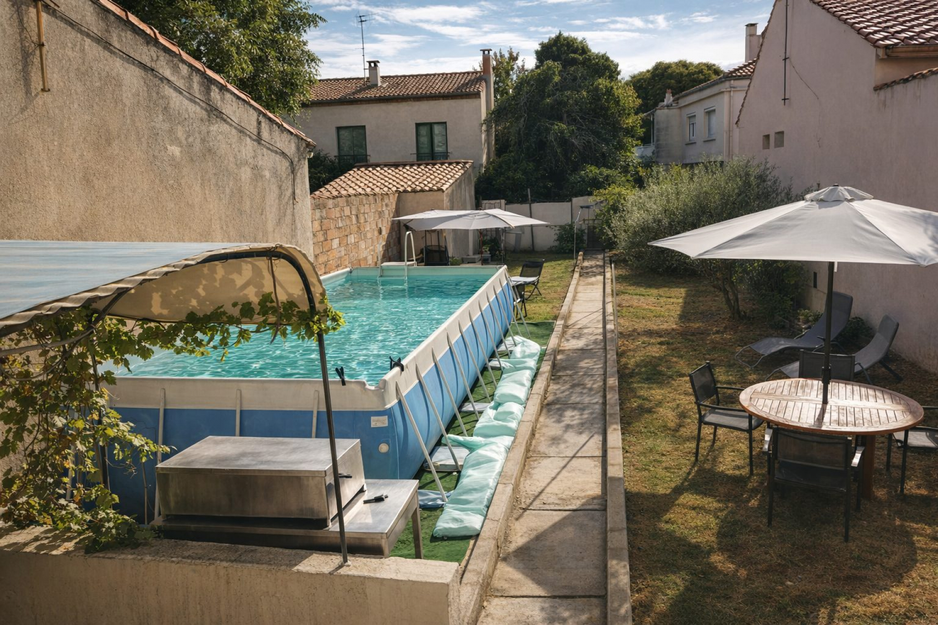 La maison bénéficie d’une double entrée et s’ouvre sur un jardin intimiste déjà équipé d’une piscine hors sol et d’une pergola, parfait pour profiter pleinement des beaux jours. Le terrain, constructible et piscinable, offre par ailleurs un beau potentiel d’évolution.