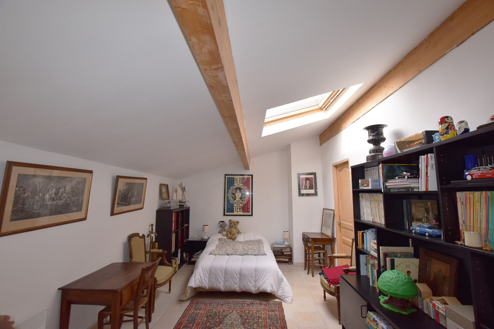 Un bureau, une salle de bains double vasque et un WC indépendant complètent ce niveau.